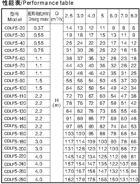 型號:CDLF5不銹鋼多級離心泵